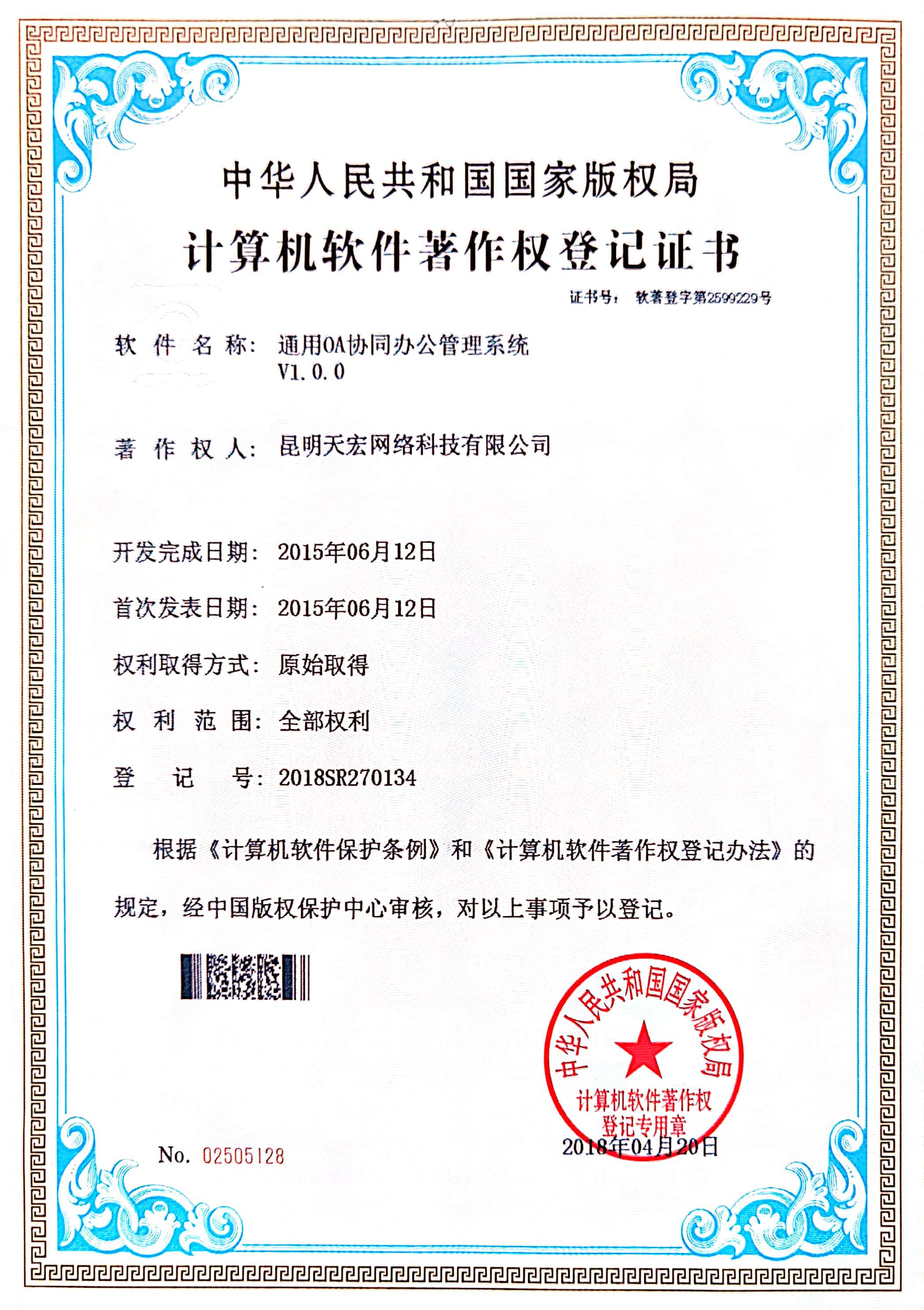 天宏網絡通過不斷的研發創新,現擁有50多項計算機軟著證書,包括多商家點餐系統、門店收銀管理系統、通用OA協同辦公管理系統、智慧商圈運營管理平臺、天宏健康智慧+系統、同城O2O管理系統等。